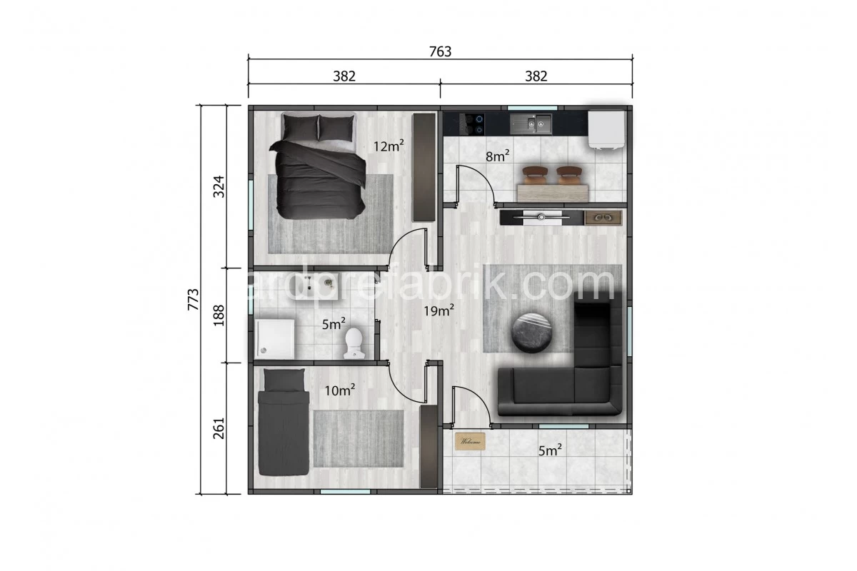 59 M2 TEK KAT PREFABRİK EV